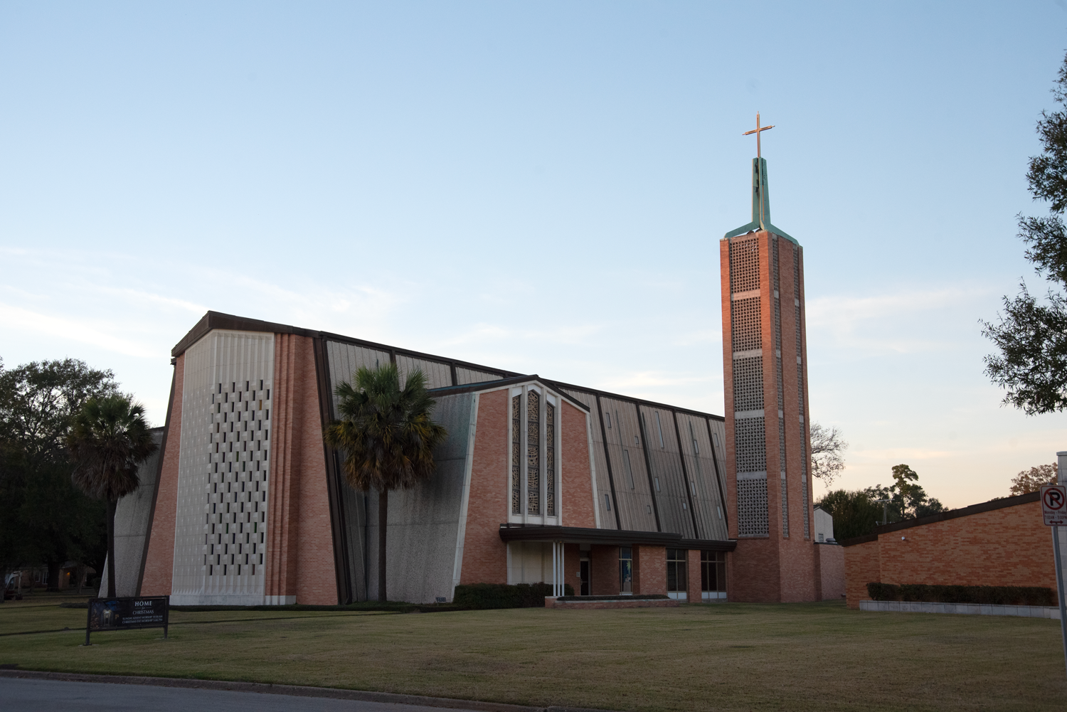 The sanctuary and campus were designed by Wallace B. Livesay and Tom B. Livesay, with Nuel B. Harmeson contributing to the sanctuary. Art glass windows by Odell Prather of Jacoby Studios add beauty and light, and the entry sculpture by Texas artist David Cargill remains a cherished feature. A west wing addition in 2001 continued Trinity’s legacy of thoughtful growth.